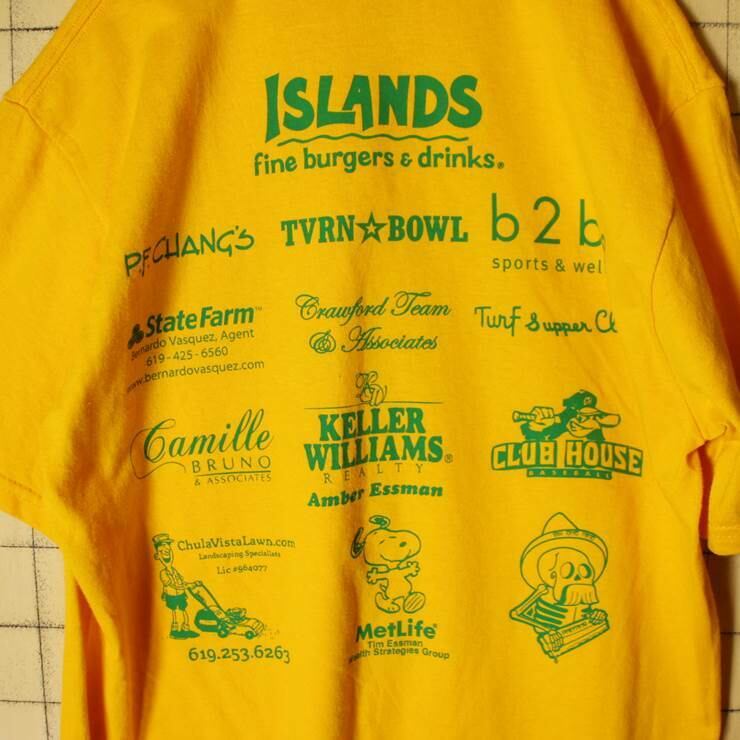 FRUIT OF THE LOOM スヌーピー 両面プリント 半袖 Tシャツ イエロー メンズS 古着 042419ss54
