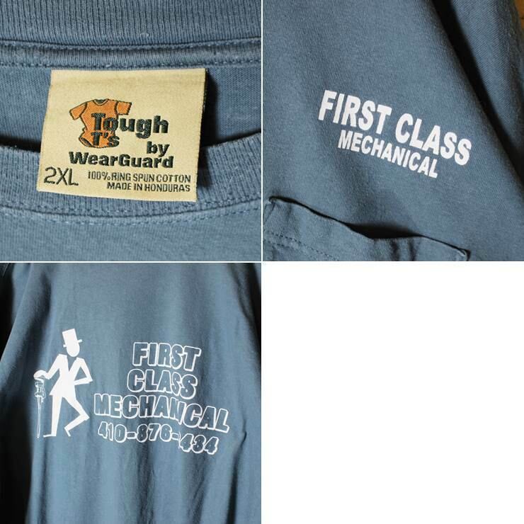 ビッグシルエット 両面プリント ポケT 半袖 Tシャツ スモークブルー メンズ2XL ビッグサイズ 古着 WearGuard 042419ss66