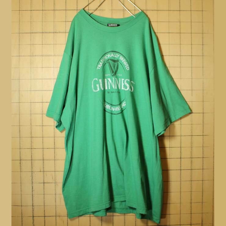 ビッグシルエット GUINNESS ギネスビール プリント 半袖 Tシャツ グリーン メンズ2XL相当 ビッグサイズ 古着です。