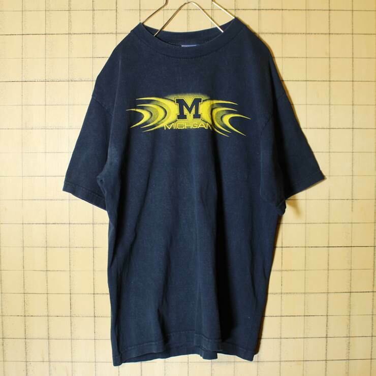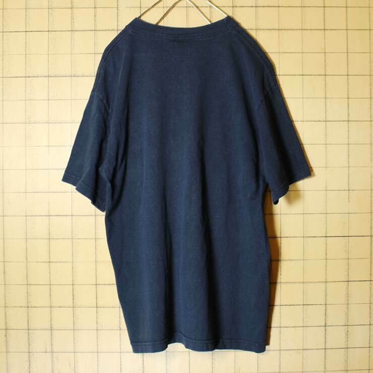 CHAMPS SPORTS MICHIGAN プリント 半袖 Tシャツ ネイビー メンズS 古着 pan-376