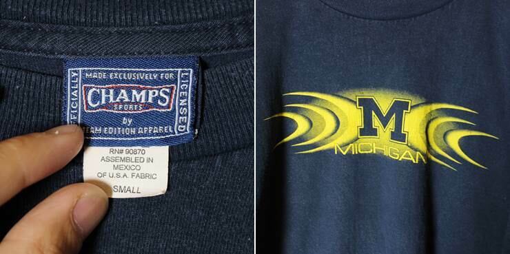 ボディカラーは風合い良く色落ちしたネイビー。フロントにMICHIGANとプリントされています。