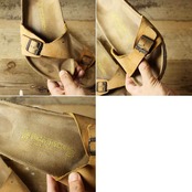 アッパーとソールの境目に接着剤の跡が見られます。またベルトの使用跡があります。
