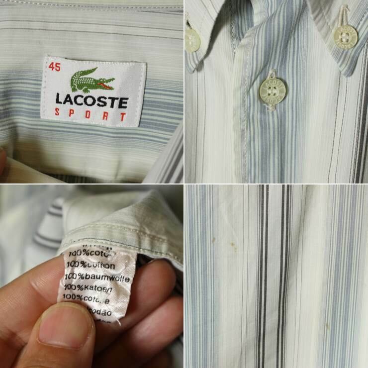 フレンチラコステ Lacoste 半袖 ボタンダウン ストライプ シャツ ブルー グレー メンズ2XL相当 ビッグシルエット 古着です。