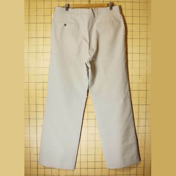 60s 70s USA製 スラックス パンツ チェック柄 古着 ベージュ SCOVILL W36相当 ベージュ グレー ノープリーツ sl-p-1