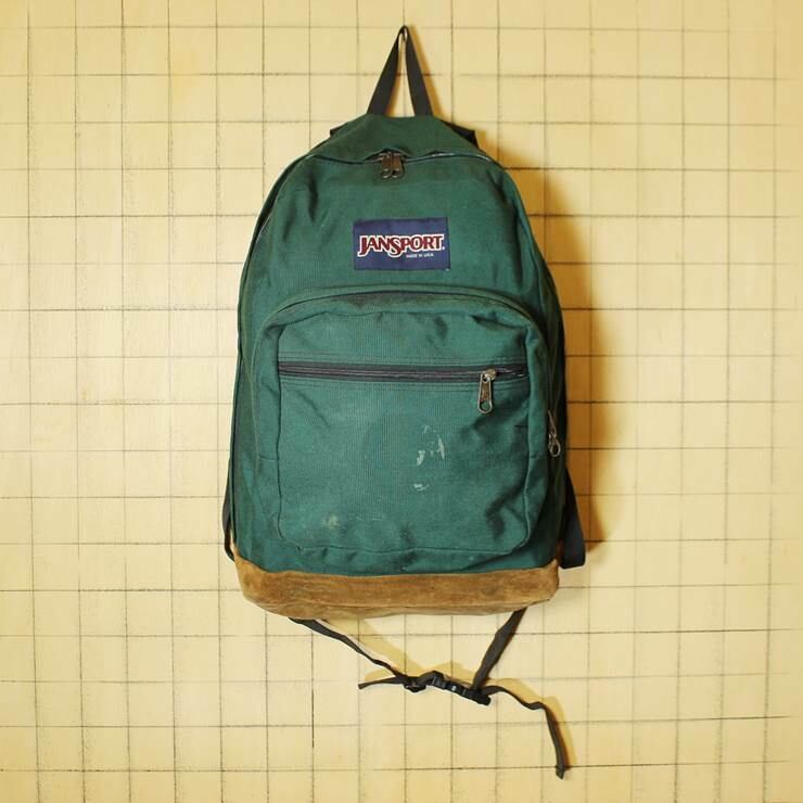 JANSPORT ジャンスポーツ リュックサック ナイロンキャンバス スウェードレザー グリーン 緑 バックパック デイパック 古着 070319ss29