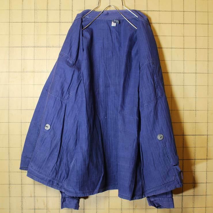 ドイツ フランス 60s-70s ヘリンボーン ワーク ジャケット ネイビー ビンテージ ヨーロッパ古着 メンズL相当 021319ss170