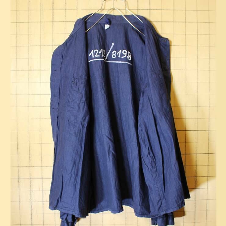ビッグサイズ ドイツ フランス 70s-80s ヘリンボーン ワーク ジャケット ネイビー ビンテージ ヨーロッパ古着 メンズ2XL相当 021319ss172