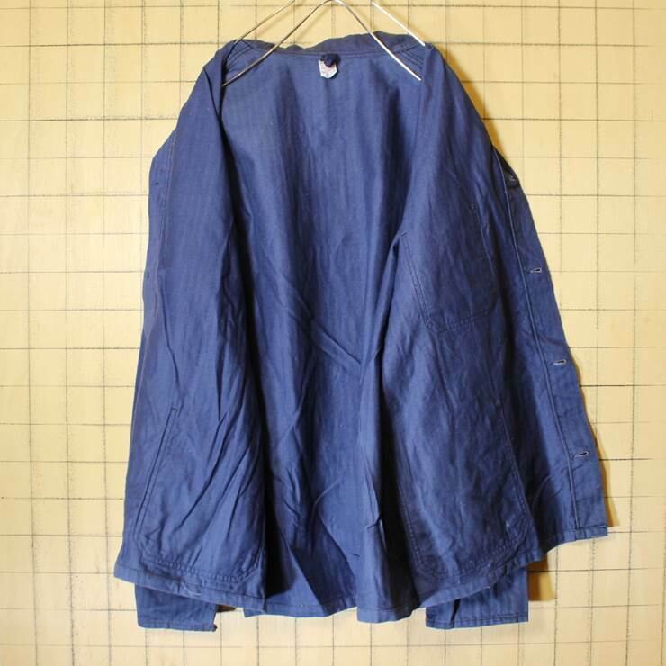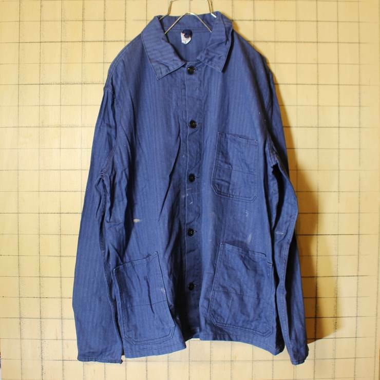ドイツ フランス 70s-80s ヘリンボーン ワーク ジャケット ネイビー ビンテージ ヨーロッパ古着 メンズL相当 021319ss177