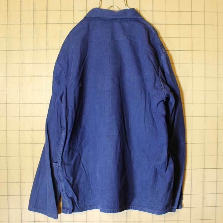ドイツ フランス 70s-80s ヘリンボーン ワーク ジャケット ネイビー ビンテージ ヨーロッパ古着 メンズL相当 021319ss181
