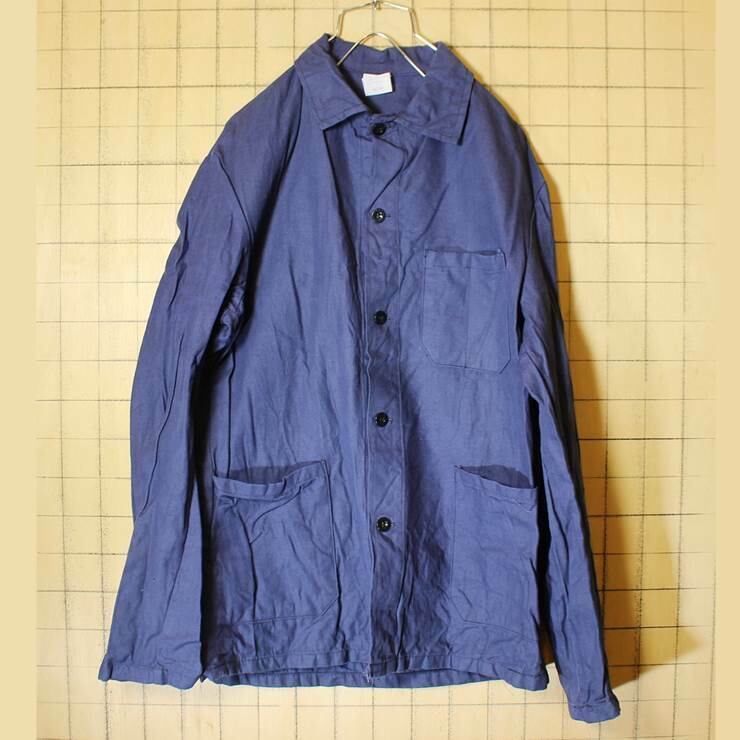 ドイツ フランス 70s-80s ワーク ジャケット カバーオール ネイビー ビンテージ ヨーロッパ古着 メンズML相当 021319ss184