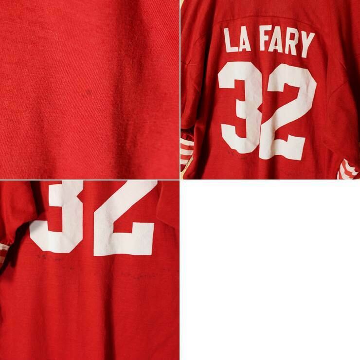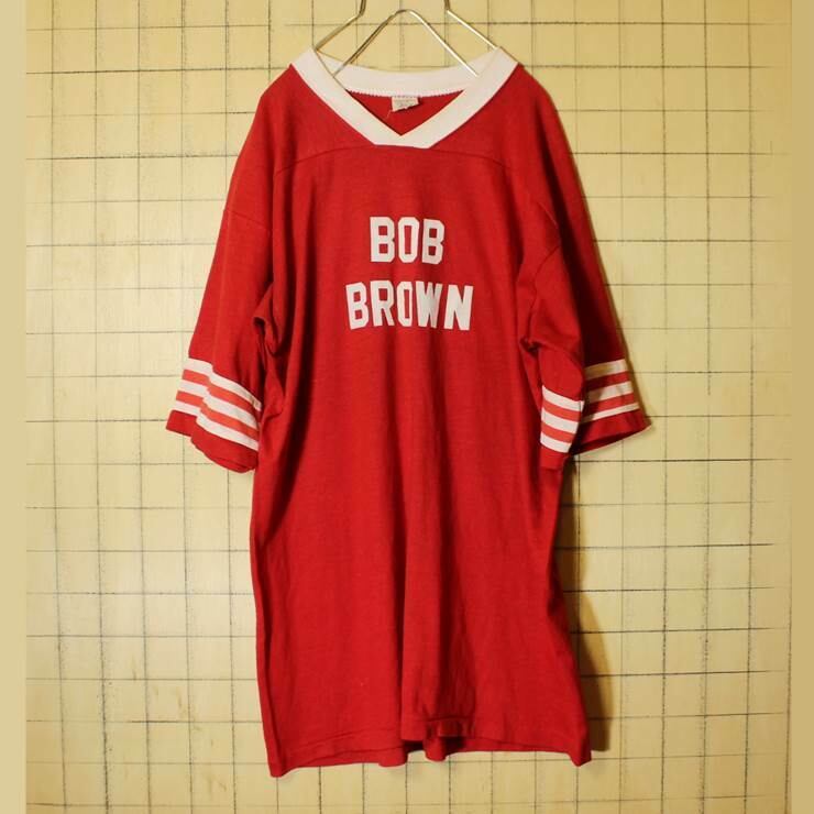 USA製 60s フットボール Tシャツ フロッキー 両面プリント レッド ナンバリング メンズL相当 古着 091319aw8