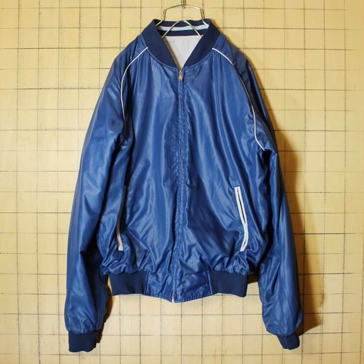Windbreaker ナイロン コットン リバーシブル ジャケット ネイビー ライトグレー メンズM ブルゾン 古着です。