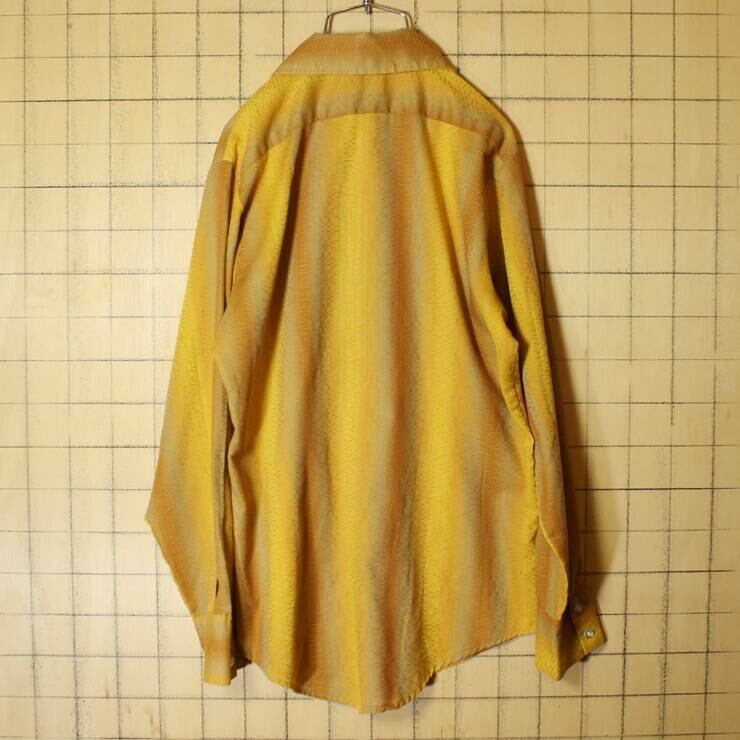 60s 70s USA製 長袖 シャツ 総柄 織模様 イエロー メンズS グラデーション 古着 091319aw186