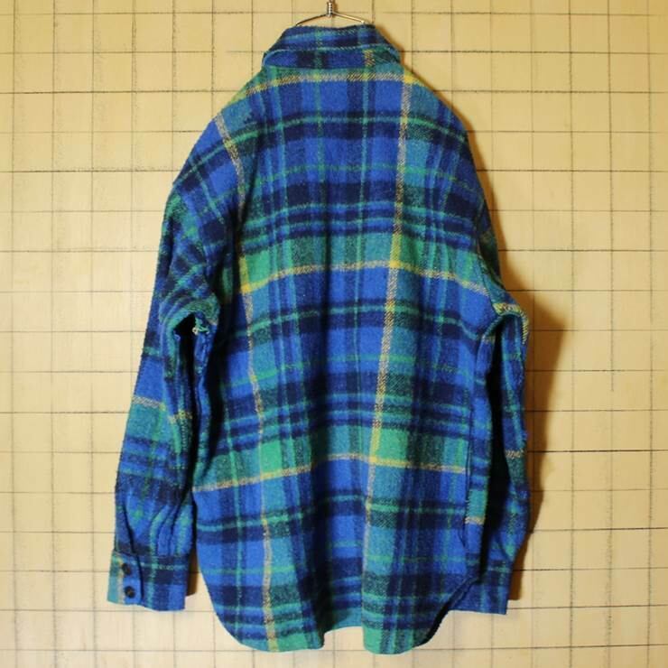60s 70s CPO ウールシャツ ブルー 長袖 チェック メンズM 古着 091319aw28