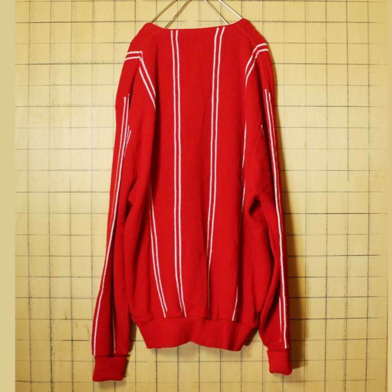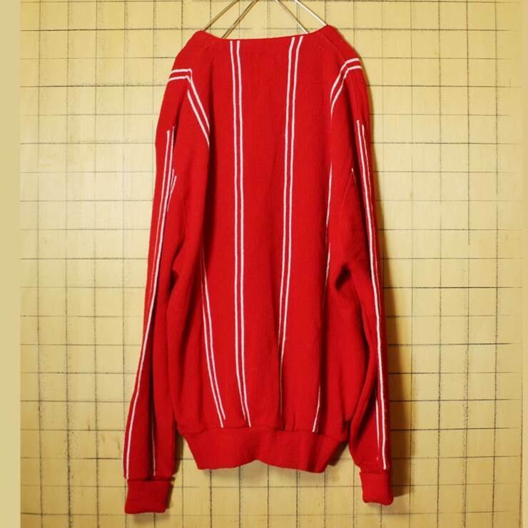 80s USA製 IZOD ラコステ LACOSTE ストライプ カーディガン アクリル ニット レッド メンズL 091319aw62