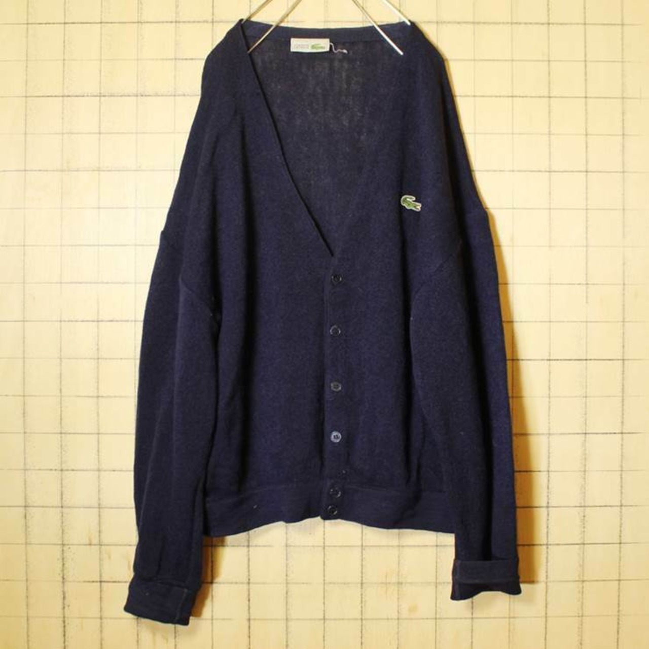 80s フランス製 フレンチラコステ LACOSTE ウールニット カーディガン ネイビー メンズXL相当 ビッグシルエットです。