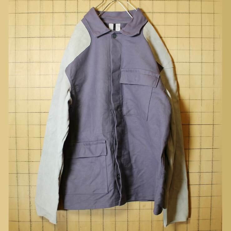 ドイツ 袖スウェードレザー ワークジャケット カバーオール グレー メンズXL相当 古着です。