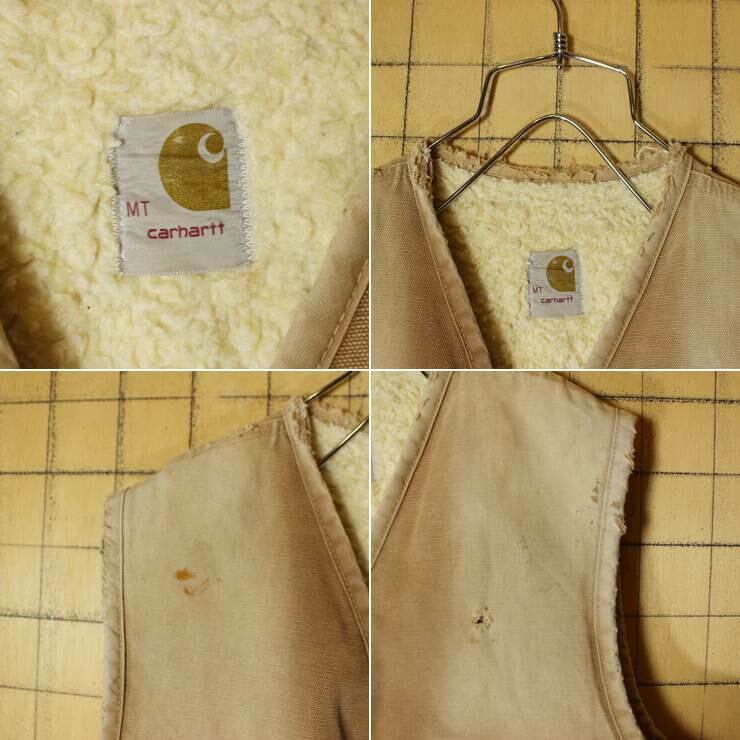 USA製 60s-70s Carhartt カーハート ダックベスト 裏地 ボアライナー メンズMT 古着 ライトブラウン ハンティング SCOVILL 070319ss93