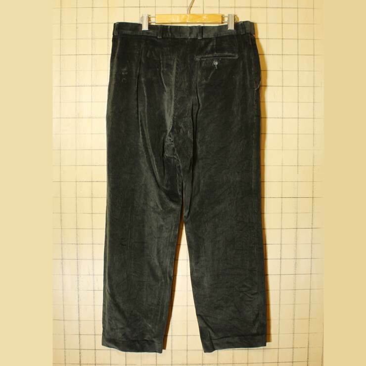 80s EURO ダークグリーン 太畝 コーデュロイ ワイド パンツ W35相当 緑 ヨーロッパ古着 091319aw85です。