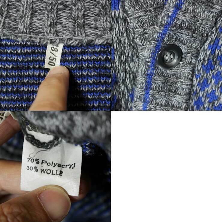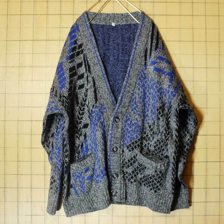 ドイツ ウールニット カーディガン メンズL相当 総柄 グレー ヨーロッパ古着 091319aw143