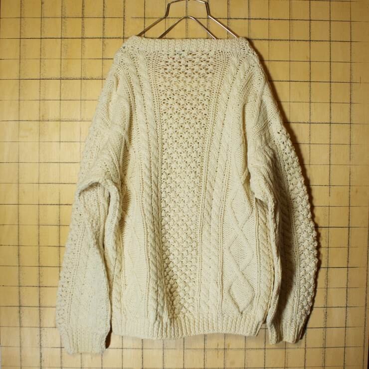 アイルランド製 70s Mac gintys フィッシャーマン アランニット セーター メンズL相当 オフホワイト 手編み ハンドメイド ヨーロッパ古着 091319aw152
