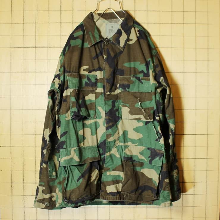 U.S.ARMY ミリタリー 古着 ウッドランドカモフラ ユーティリティーシャツ USA製 SMALL REGULAR 迷彩 ダメージ pan-398
