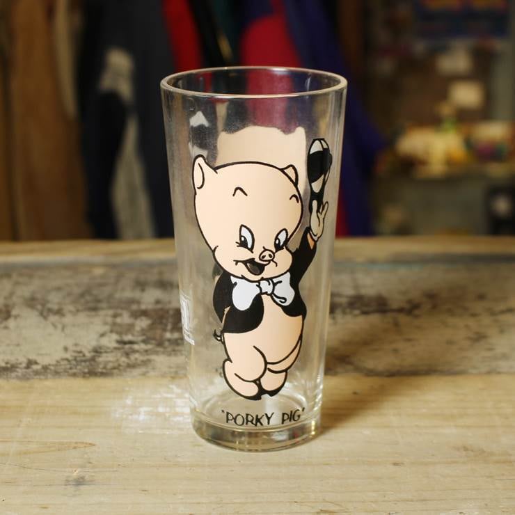 1973 PEPSI ペプシコーラ Porky Pig グラス Collector series glass ポーキー ピッグ ルーニーテューンズ LOONEY TOONS ワーナー 19ty1