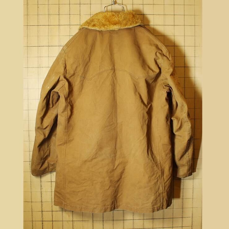 50s 60s ダックカナディアンコート ジャケット 裏地ボアムートン メンズL相当 ヨーロッパ古着 ライトブラウン ヴィンテージ 121119aw28