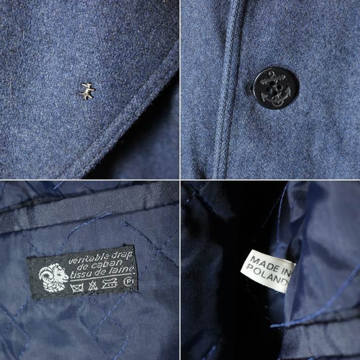 ポーランド製 ウール Pコート ネイビー ブルー euro メンズM相当 ジャケット ヨーロッパ古着です。
