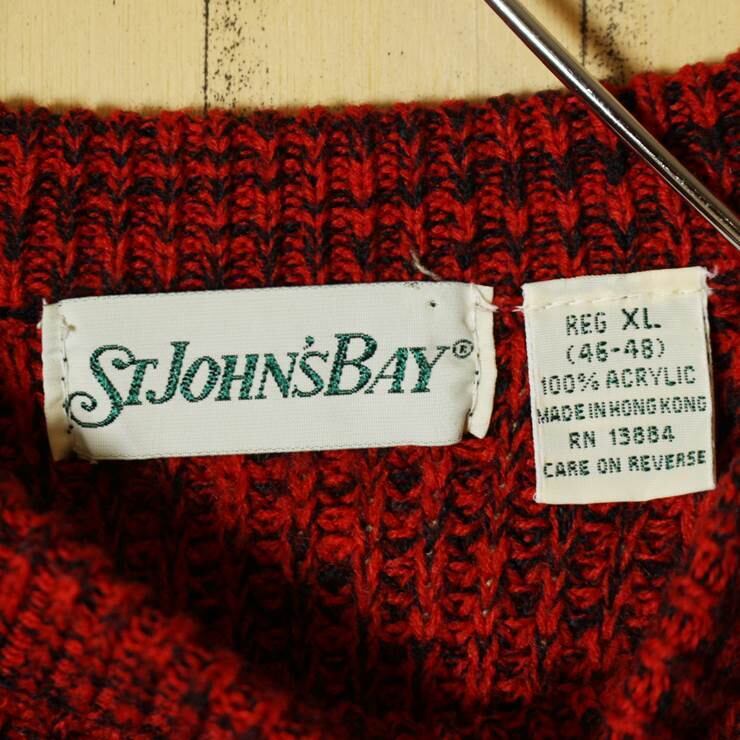 STJOHN'SBAY アクリル ニット 総柄 セーター レディースXL メンズML相当 レッド アメリカ古着です。