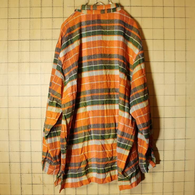 フランス ウール オレンジ チェック ジップアップ シャツ 長袖 メンズL ワーク 古着 121119aw73