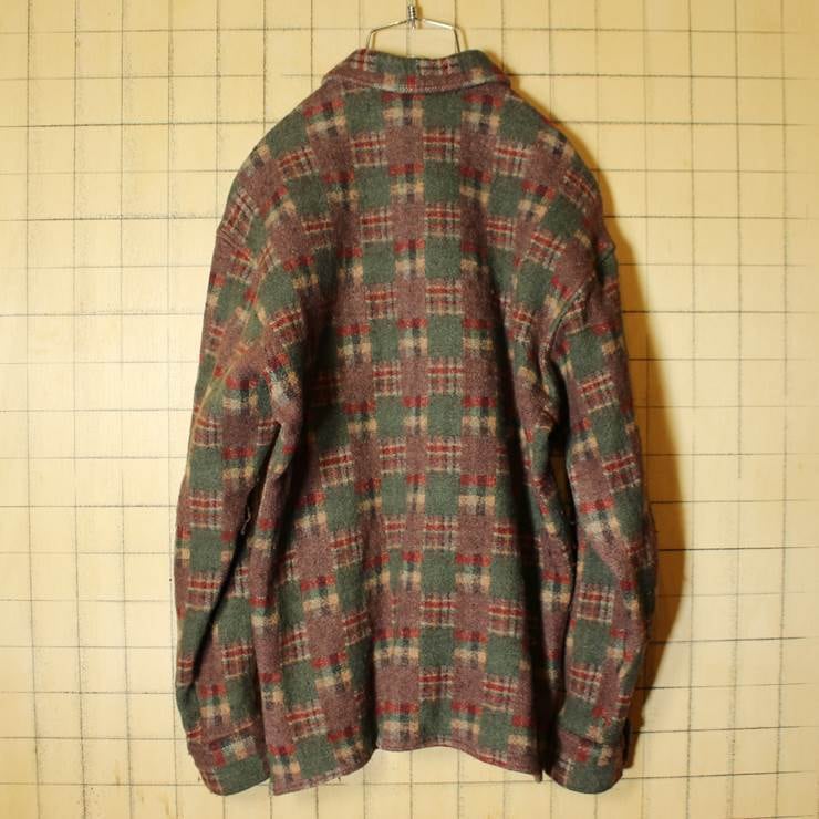 C&A ウール ブラウン チェック シャツ 長袖 メンズM相当 ワーク 厚手 ヨーロッパ古着 121119aw75