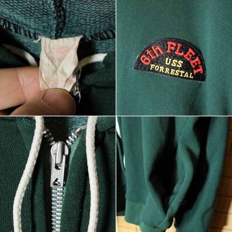 EURO 60s 70s グリーン トップジャージ パーカー ワッペン メンズSMサイズ相当 ヨーロッパ古着 フーディー 121119aw10