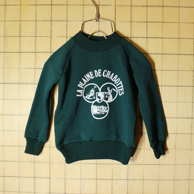 デッドストック 70s 80s EURO フロッキープリント キッズ スウェット グリーン トレーナー 80-90サイズ相当 子供服 ヨーロッパ古着 121119aw7