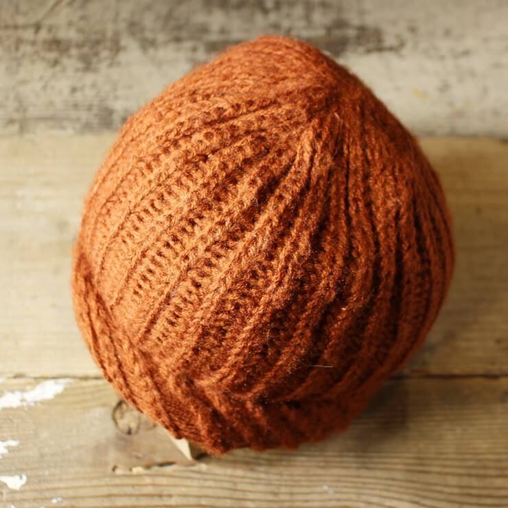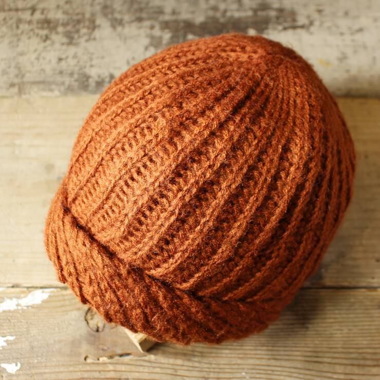 風合いのあるブラウンカラーで編み込まれた暖かみのあるアクリルニットです。