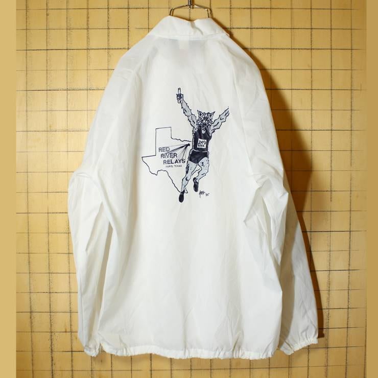 USA製 80s Pla-Jac ナイロン コーチジャケット ホワイト 白 メンズL プリント 古着