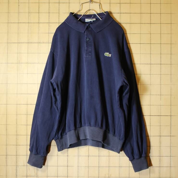 フランス製 80s フレンチラコステ Lacoste 長袖 ポロシャツ ショート丈 ネイビー メンズML相当 ワンポイント ヨーロッパ古着