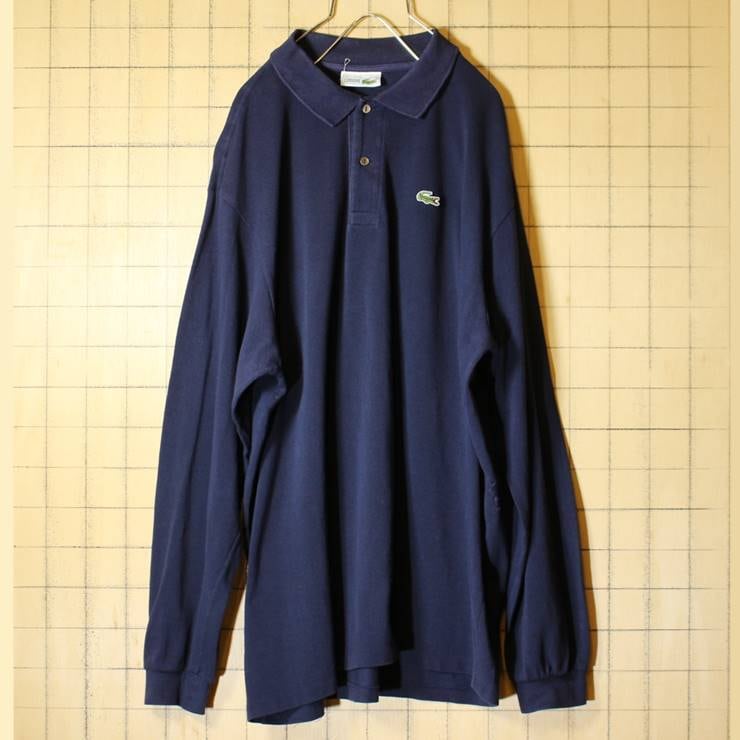 フランス製 80s フレンチラコステ Lacoste 長袖 ポロシャツ ネイビー 紺 メンズXL相当 ワンポイント ヨーロッパ古着