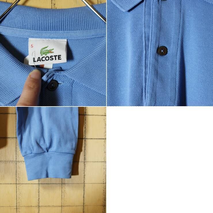 フレンチラコステ Lacoste 長袖 ポロシャツ ライトブルー 水色 メンズML相当 ワンポイント ヨーロッパ古着です。