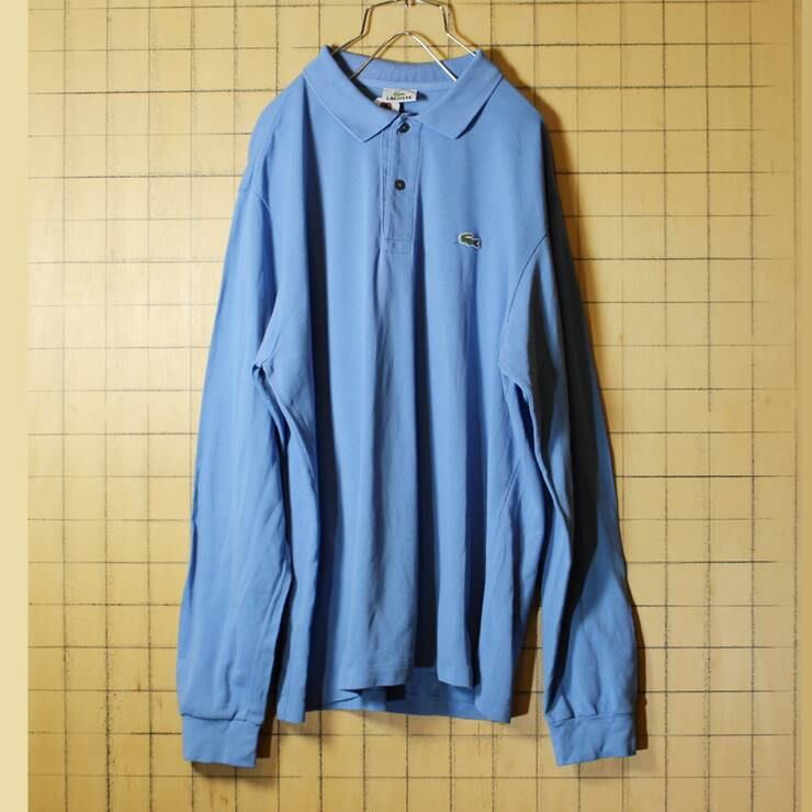 フレンチラコステ Lacoste 長袖 ポロシャツ ライトブルー 水色 メンズML相当 ワンポイント ヨーロッパ古着