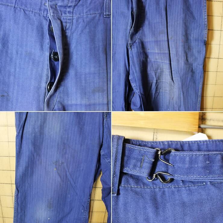 60s-70s ドイツ ヘリンボーン ペインター ワークパンツ シンチバック メンズ37インチ相当 ネイビー 濃紺 フランス ヨーロッパ古着 022620ss9
