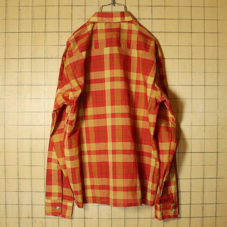 60s-70s LUCERNE チェック ボックスシャツ レッド メンズM アメリカ古着 ビンテージ pan-432