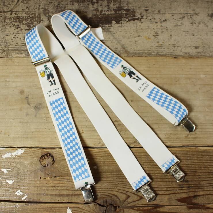 ドイツ製 クリップ式 サスペンダー ゴム ホワイト プリント ICH HALT MASS ビール ヨーロッパ古着 022620ss152
