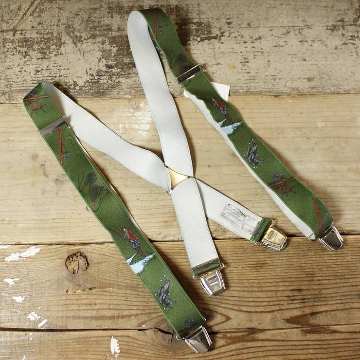 ドイツ製 クリップ式 サスペンダー ゴム グリーン プリント 釣り フィッシング ヨーロッパ古着 022620ss150
