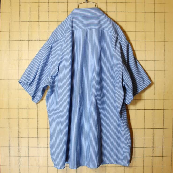 ビッグシルエット ストライプ ワークシャツ 半袖 ワッペン メンズXL ライトブルー ビッグサイズ 古着です。