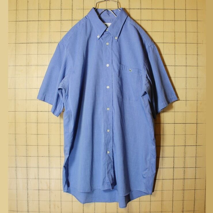 フレンチラコステ Lacoste 半袖 ボタンダウン シャツ ライトブルー メンズML相当 古着です。
