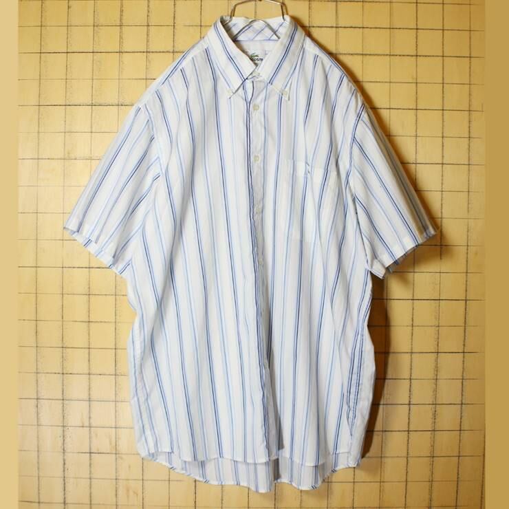 フレンチラコステ Lacoste 半袖 ボタンダウン ストライプ シャツ ブルー ホワイト メンズL相当 古着 022620ss67