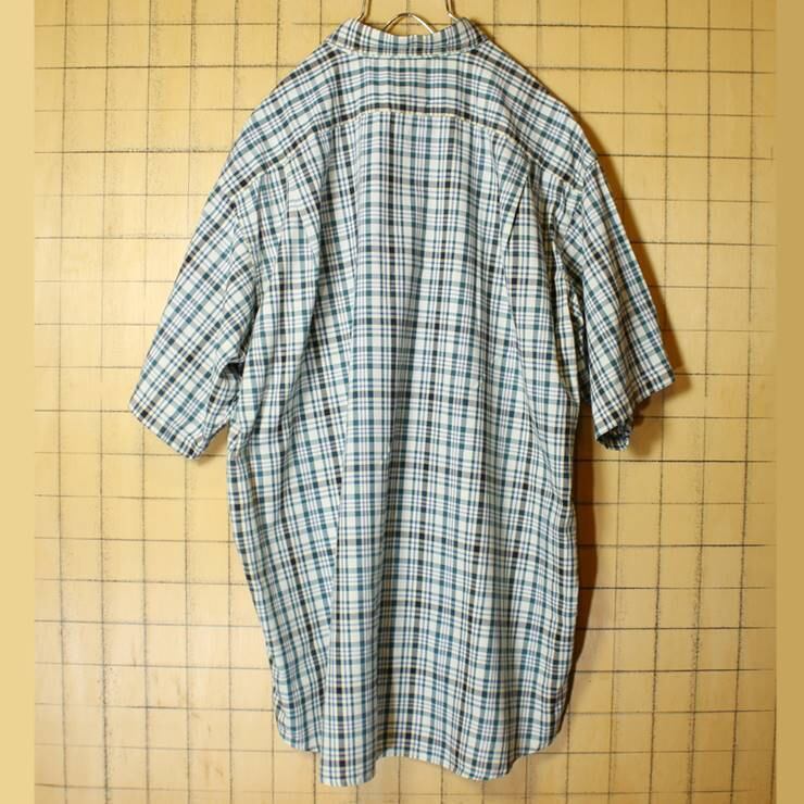 ビッグサイズ フレンチラコステ Lacoste 半袖 ボタンダウン チェック シャツ グリーン メンズXL相当 古着 022620ss74