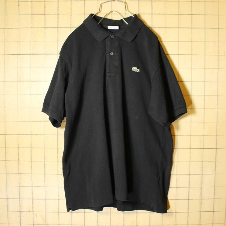フレンチラコステ Lacoste 半袖 ポロシャツ ブラック メンズM相当 ワンポイント 黒 フランス企画 古着 022620ss36