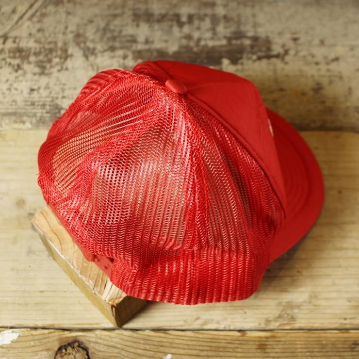 USA メッシュキャップ 帽子 MADISON CONCRETE PIPE プリント レッド 赤 フリーサイズ 古着です。